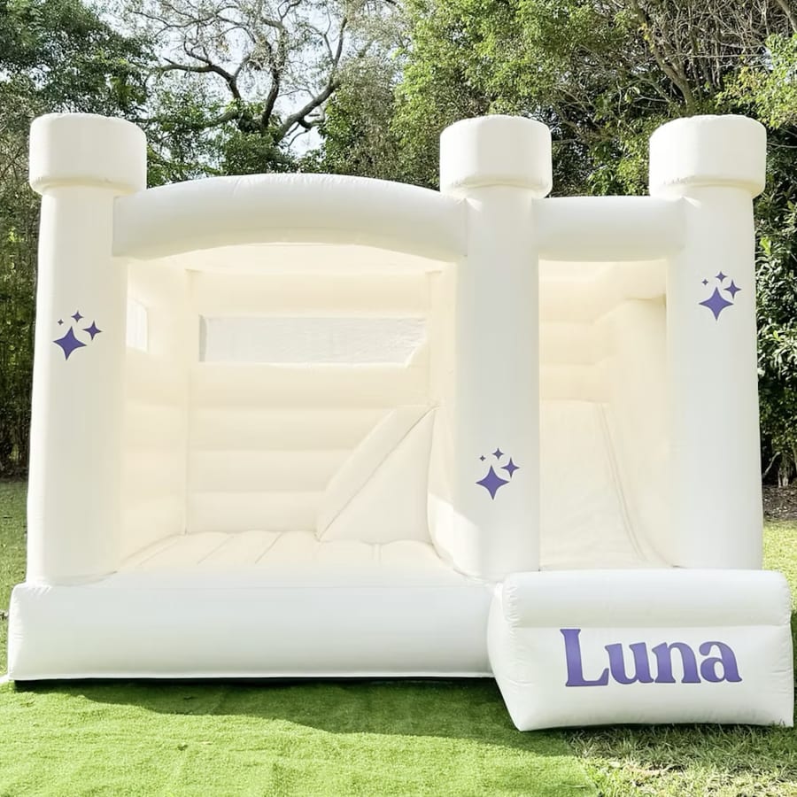 Suitable for large outdoor spaces and flat surfaces. Designed for multiple children at once for higher capacity events. Requires access to a standard power source for blower operation. Setup and breakdown included. Must be supervised at all times during use. With any bounce house rental, soft play customization is included to match your event theme.
