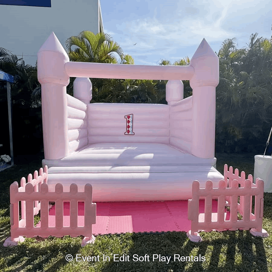 Suitable for outdoor and large indoor spaces. Recommended for toddlers and young children. Requires flat surface and access to power for blower operation. Setup and breakdown included. Must be supervised at all times during use. Ideal for themed events and larger guest groups. With any bounce house rental, soft play customization is included to match your event theme.